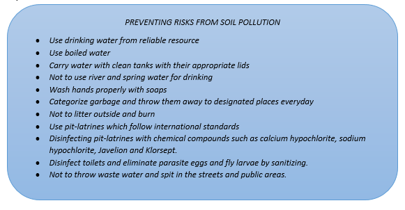 Disease-causing objects can survive for a long time in contaminated soil and water. For example, infect ants such as bacteria, and viruses which cause dysentery (a type of gastroenteritis that results in diarrhea with blood) can live up to 2-4 months in a contaminated environment. According to the Ministry of Health, around 521 dysentery cases were registered for this year which is 231 more than that of last year. Metropolitan Professional Inspection Department released a recommendation on “PREVENTING RISKS FROM SOIL POLLUTION” this year.